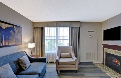 This suite is a cozy space to unwind and refresh, we are equipped with a full-size kitchen where you can feel at home and so can your four-legged friends. We offer a complimentary hot breakfast, lively socials on Wednesdays, and amenities such as a fitness center and a seasonal outdoor pool to enhance your comfort during your stay.