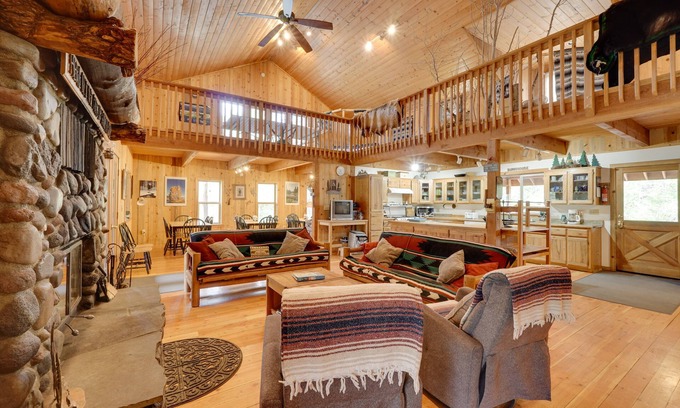 INDOOR LIVING: Rustic interior, Smart TV, sofas, washer/dryer, board games, ceiling fans (all sleeping areas)
