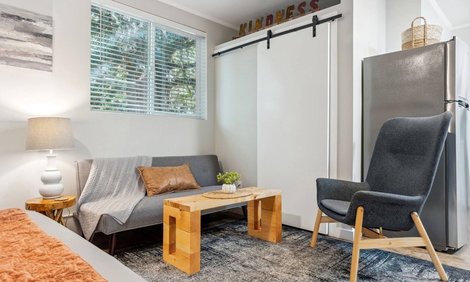- No smoking or vaping- Pet friendly with a $50 fee (+ fees & taxes)- No events, parties, or large gatherings- Must be at least 25 years old to book- Additional fees and taxes may apply- Photo ID may be required upon check-in- NOTE: Your safety matters. This property features an exterior security camera located on the owner’s next-door property facing toward the driveway. This camera does not look into any interior spaces. This camera records sound and video when activated by motion and will be on during your stay- NOTE: The homeowner lives on-site, in the next-door property with a separate entrance, and may be present during your stay- NOTE: This single-story studio requires 1 step to enter- NOTE: This property does not have air conditioning