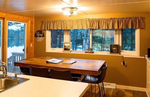 - All-seasons lakefront cabin with dock, wood fireplace, kitchen, kayaks, & AC