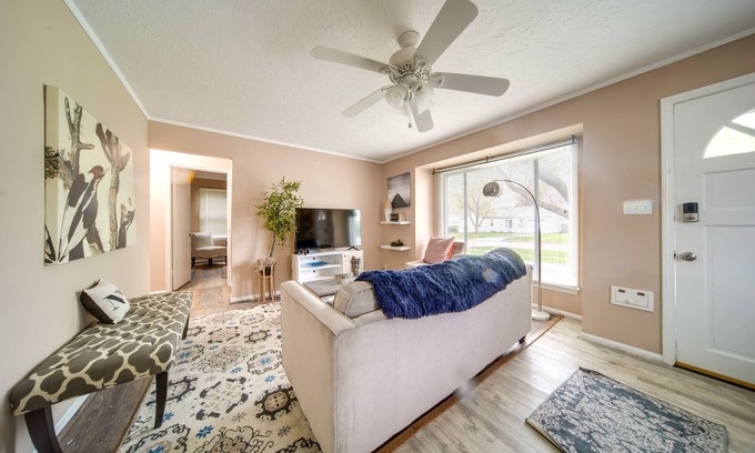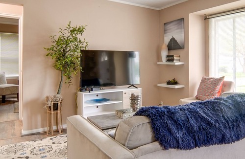 Find your bliss at this inviting cottage near Lake Erie and Euclid Creek Reservation, where all types of outdoor recreation can be achieved. Go fishing, boating, or beach perusing at either of these locations. Then, head over to downtown Cleveland to switch up the scene for some big-city adventures. When you’ve had your fill, return to the 2-bedroom, 1-bath getaway to rest up by one of 4 Smart TVs or play fetch with your pups in the grassy backyard.