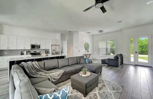 Experience the ultimate family getaway at our brand new property elegantly designed and fully stocked with everything you need to enjoy your home away from home. As you walk through the oversized front door, you are welcomed with an open concept living area. From tall ceilings to an abundance of natural light, this house will feel spacious yet cozy with our comfy decors and throw blankets. The luxe kitchen includes an enlarged quartz countertop that can comfortably seat up to 4 people. Our design is monochromatic and minimalistic to ensure a relaxing environment. We are central to grocery stores, supermarkets, beaches and many attractions making it easy to travel and explore.