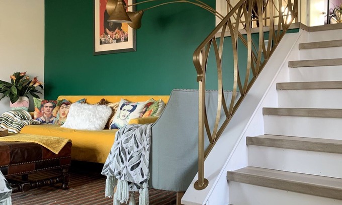 This unique home has a style all its own. You can experience this beautiful space inspired by the art of Frida Kahlo & Diego Rivera, these two unique Mexican Painters got married in 1929 merging talent and amazing art skills.