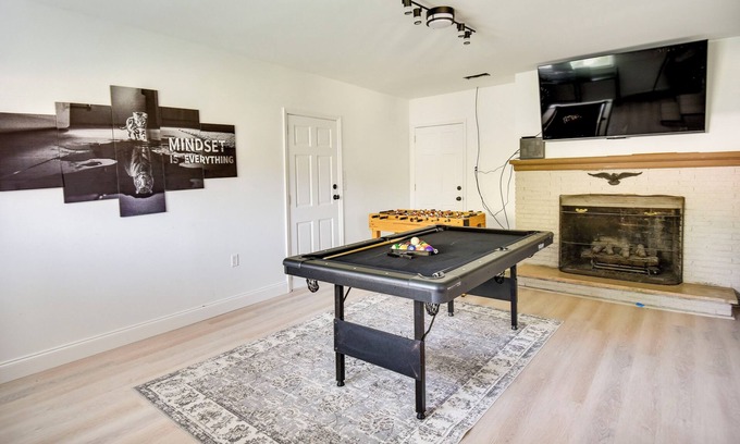 As you settle into this 3-bedroom, 2-bathroom rental, you'll find a living room, a fireplace, air conditioning, and a ceiling fan. Enjoy the free WiFi and pool table. The kitchen is equipped with an oven, a stovetop, and a dishwasher, as well as an ice maker, a microwave, and cookware. Other amenities include bed sheets, an ironing board, housekeeping, and heating.