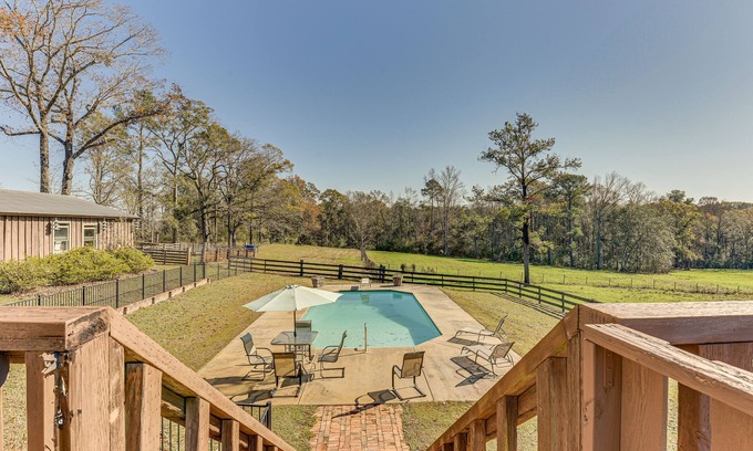 Immerse yourself in the secluded beauty of Opp, Alabama, at this family-friendly, 3-bedroom, 2.5-bathroom vacation rental overlooking 40 acres. This hand-built cabin features modern comforts and amenities while having a rustic charm. Spend your days relaxing poolside while the kids play in the welcoming tree house, enjoy a nature walk with your furry friend, whip up a meal on the grill, and end the night stargazing on the deck or cozy up by the wood-burning stove.