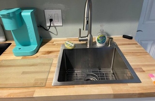 As part of Casa del Limone, tucked behind the main house, the guest studio rented separately is Paradiso dei Limoni, a charming private retreat in the heart of New Smyrna Beach, perfect for monthly rentals. Whether you're a retiree, snowbird, teacher on summer break, or simply someone lucky enough to take an extended vacation, this dreamy little retreat invites you to slow down and stay awhile. Located in a safe, laid-back neighborhood, just a short walk to the beach and the nostalgic charm of Flagler Avenue, you’ll find yourself wandering with a snow cone in hand, soaking up the sweet feeling of Old Florida. Inside, the studio is cozy and comfortable — ideal for cooking slow meals, reading a good book, or curling up for a peaceful afternoon nap. This cozy unit features one bedroom, a loft with an additional bed, a kitchenette, and a comfortable sitting area — ideal for morning coffee, quiet reading, or evening unwinding. Thoughtfully designed, the guest house shares access to the beautifully landscaped courtyard-style backyard, complete with string lights, a firepit, hammock, loungers, grill, dining area, outdoor shower completed with bicycles for you to enjoy being fit or being a kid again — the perfect setup for barefoot evenings under the stars. The guest house also shares access to the full-size washer/dryer, and has parking for 1 vehicle in the driveway. Pet-friendly policy (1 small dog under 20 lbs with fee), every detail is designed to make you feel right at home.