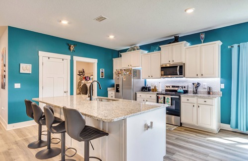 Inspired by the Gulf Coast’s azure waters, this Pensacola vacation rental offers a laid-back spot to stream, stretch, or log on. Inside the 4-bed, 3-bath home, you’ll find space to unwind — plus a bar, an 85" TV, and a desk with dual monitors. Fire up the grill while your crew kicks back on the screened lanai, then plan a trip to Pensacola Beach’s sugar-sand shores 26 miles away. Relaxation starts here — book today!