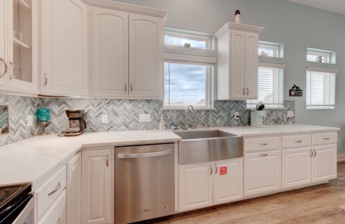 Across from the living room, you'll find 3 relaxing bedrooms. Bedroom 1 features a king-size bed, an en-suite bathroom and private balcony with Gulf views! Bedroom 2 is just down the hall and offers a queen-size bed. Bedroom 3 has a queen-size bed. These bedrooms share a full bathroom. On the first floor are 2 additional bedrooms. Bedroom 4 is large and has 2 queen-size beds. Bedroom 5 is a bunk room that has a triple bunk bed. There is a full bathroom shared by these 2 bedrooms. Outside you will find a grill picnic tables and plenty of comfy Adirondack chairs for lounging. Additional amenities include boat parking, washer and dryer, outdoor shower and private parking for up to 6 cars. No garage access.