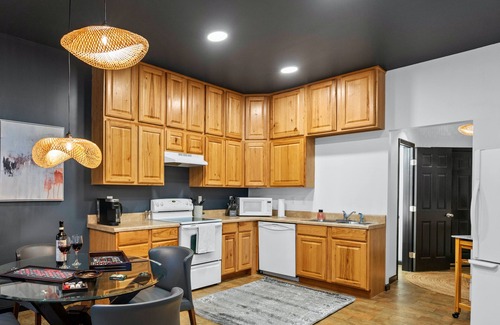 The kitchen on the main floor (yes there are 2 kitchens!) features a full-size stainless steel refrigerator with an ice maker, electric stove/oven, microwave, and dishwasher. The kitchen is fully stocked with supplies such as: