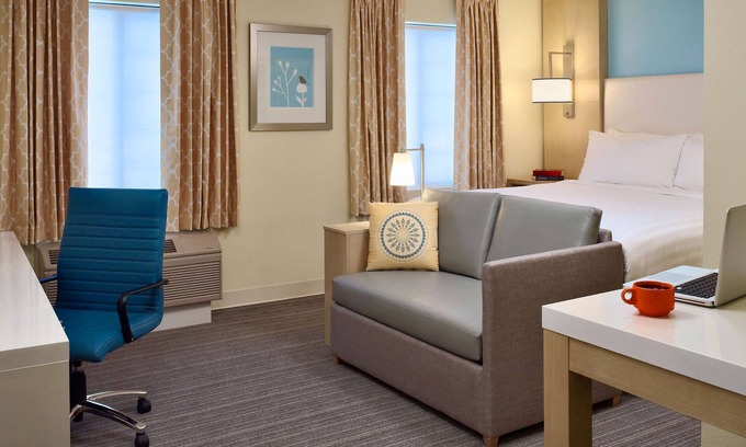 We offer accommodations just one block from the premier shopping and dining destination. Spread out in stylish and modern rooms with flat-panel TVs, free high-speed internet, and a fully-equipped kitchen where you can prepare your favorite meals with family and friends. Work out at our fitness center. Stay cool in our outdoor pool. Convenient parking and grab-and-go breakfast are available for FREE! All rooms come with work desks and ergonomic chairs designed to help business travelers get along with their work-related tasks in the comfort of our pet-friendly property’s spacious rooms.
