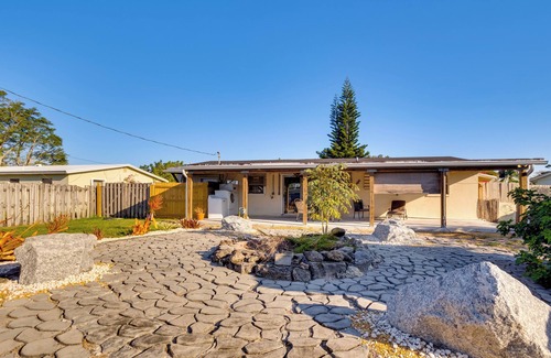With an ideal location near Jensen Beach and downtown restaurants, this 3-bedroom, 2-bath vacation rental is the perfect place to stay in Stuart! Family time is best spent at this spacious home lounging in the garden-style backyard, roasting marshmallows by the glow of the fire pit, or hosting a movie night inside on the Smart TV. Grab your furry friends and head out for some time in the Florida sunshine with a hike in one of the area’s scenic preserves or a day of beachside relaxation.