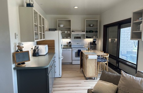The apartment was the original garage turned into a mother in law suite by the previous owners. We currently remodeled to give a fresh modern feel and all the amenities to make it comfortable for guests. You have complete and sole access to the apartment. It is not a shared space, it’s equipped with all the items you need to cook meals, eat and relax.