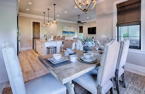 Your stay includes exceptional features such as two included golf carts for easy transportation around the scenic community, a charming community pool perfect for unwinding after wedding festivities, and exquisite private balconies that allow you to soak in the serene surroundings. The open floor plan integrates a gourmet kitchen with marble countertops, a rustic dining area ideal for family-style meals, and beautifully decorated bedrooms each with their own en suite bathroom. After a long day of celebrations, you can retreat to your master suite, which boasts a large soaking tub and a private balcony overlooking the lush green fairways, ensuring a peaceful sanctuary.