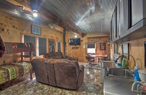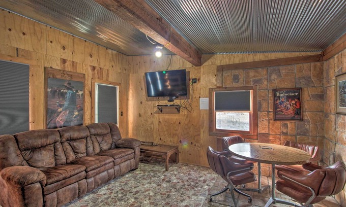 Choose your next Missouri vacation rental based on amenities and adventurous possibilities — this humble cabin offers versatility like none other. Nestled in a community where you can fish, kayak, and boat in the on-site pond, go pheasant gaming, and take a mini road trip out to Wallace State Park, the 1-bath studio recognizes the beauty in remote destinations. If you prefer a slower pace, the fire pits will bring time to a standstill underneath the stars.