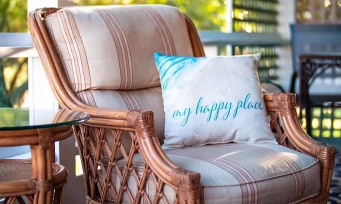 The open living and kitchen area feature original artwork on the walls, classic beadboard wood paneling and floors, and eclectic, vintage, and antique family furnishings are combined to make this a true beach "home away from home". The front porch is an outdoor extension of the living area with a seating group, dining table, and no outside access from the ground level - perfect for hanging out and catching the ocean breezes.