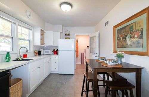 Step outside to your large, fenced-in backyard, ideal for pets and kids to play and run around. Enjoy outdoor dining with a table and chairs during the warmer months, or just relax and take in the fresh air. Our guests say they love how the spacious property and quiet neighborhood make it perfect for families and guests traveling with pets!