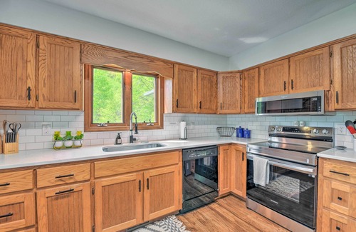 Make memories that’ll last a lifetime at this 2-bedroom, 2.5-bath Waynesville vacation rental! This home features 4 Smart TVs, 2 fully equipped kitchens, and a laptop workspace for guests working remotely. Relish the mountain views from the deck as you watch your pet explore the fenced yard. Spend your time exploring the Great Smoky Mountains, shredding the slopes at Cataloochee Ski Area, or dining and sightseeing in Asheville! No matter what season, this property offers something for everyone.