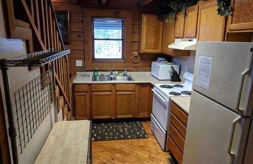 For larger groups this cabin is conveniently located near Bear Cub and the small Black Bear Lodge motel.