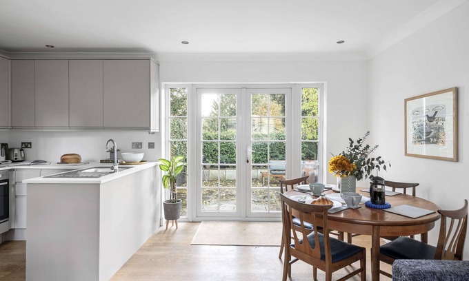 Outside, enjoy a private walled patio with garden seating and a firepit, plus access to the nearby village green with play equipment and dog-friendly spaces. The local pub, just steps away, offers stone-baked pizzas and traditional food in its garden.