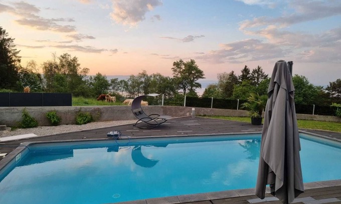 Petite Habitation, vue Imprenable lac et Montagne is located in Sciez. Petite Habitation, vue Imprenable lac et Montagne provides accommodation, featuring Air Conditioner, Parking, Pool, among other amenities. This House features Air Conditioner, Parking, Pool, to make your stay a comfortable one.