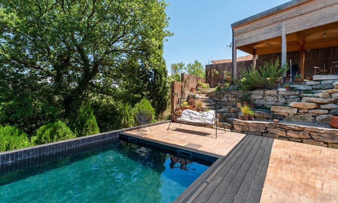 Nestled in Villedieu, a Templar village with preserved charm, on the famous wine route, the house enjoys an authentic and peaceful environment. On the central square, between the fountain and century-old plane trees, cafés and bistros come alive, where you can savor the cuisine of a starred chef, a discreet gem of the region.