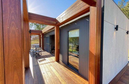 This all-abilities studio features a comfortable configuration with a King bed, offering the perfect space for relaxation after a day of wedding festivities. Step outside onto your private deck to soak up stunning vineyard views while enjoying a complimentary wine tasting at the cellar door. Whether you are unwinding together or preparing for the big day, Petra @ Cael's Gate is thoughtfully equipped to cater to your needs, ensuring everything from cozy comforts to delightful experiences is at your fingertips.