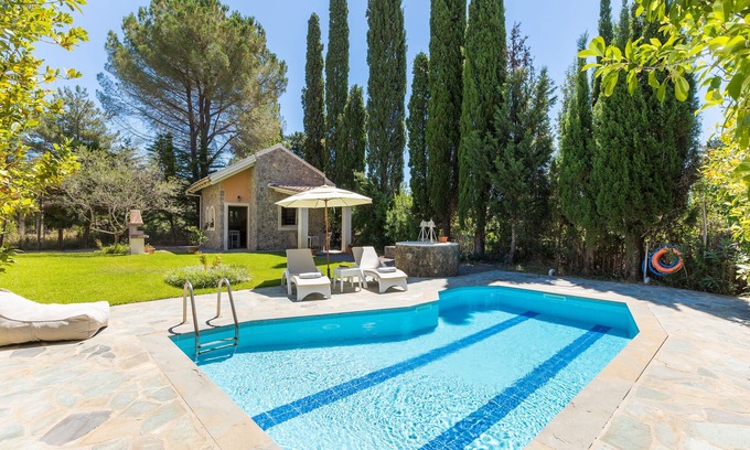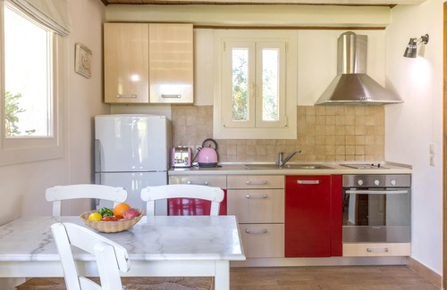 Sleeps 2/3. One bedroom house with private pool. Petrinos cottage is the perfect rural retreat. A traditional stone villa with a terracotta-tiled roof, it sits in gorgeous green grounds with swishing trees and pretty gardens. The blue flag St. Nicholas beach is only a short 5 minutes walk. Ideal for summer and winter holidays as well as for long term rentals.