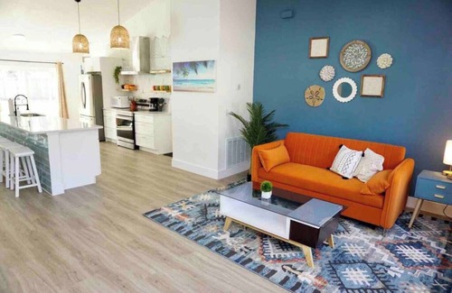 Welcome to the PETS OK! BOHO Bungalow, a unique retreat that captures the essence of romance and celebration, making it an exceptional choice for your wedding accommodation in Palm Coast, Florida. This beautifully renovated 4-bedroom home offers ample space for your wedding party, ensuring that everyone can stay together in a cozy, inviting atmosphere. With a charming bohemian aesthetic and a large fenced yard, the bungalow provides not only comfort but also a picturesque backdrop for those memorable pre-wedding photos.