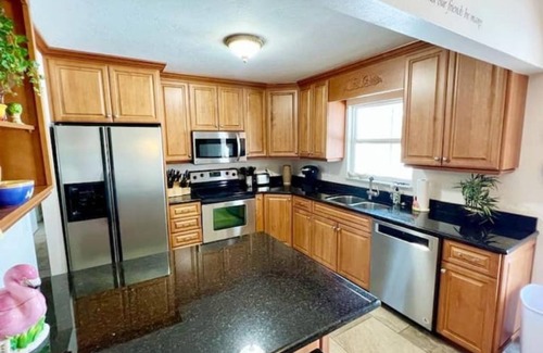 This exquisite vacation rental offers a serene and welcoming retreat, promising an unforgettable getaway for up to 5 guests. The home is perfect for socializing or simply relaxing after a day of exploration.