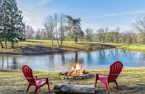 - Cozy & Modern w Hot Tub, Fire Pit, Grill & Pond
