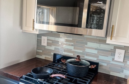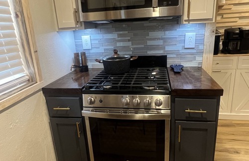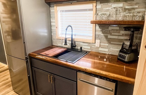 The warm and inviting home is the perfect getaway for those looking to escape the city and enjoy the great outdoors. The open concept living room and kitchen space offers a fully equipped kitchen that has all the essentials for cooking your favorite meals. Can’t forget about the coffee bar! We offer a dedicated work space with high speed internet with WIFI. Each of the two bedrooms and living room are equipped with a Roku TV which allows you stream your favorite shows.