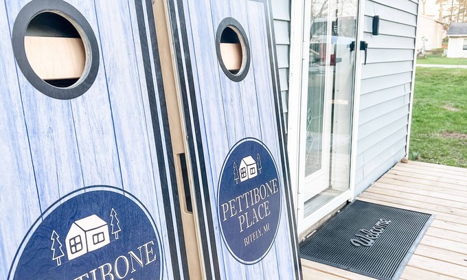 Outdoor Space: Pettibone Place has a deck equipped with an outdoor dining area, gas BBQ grill, utensils and spices to grill your favorite meals! We also include cornhole boards/bags to toss around on those beautiful summer days. You'll also find 2 kayaks and a dolly for easy transport to Pettibone Lake! (2 lifejackets included). To close out the evening, relax at the campfire and roast some S'mores!