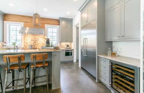 Inside, the master bedroom is a sanctuary of opulence. A king-sized bed takes center stage, framed by a stunning custom herringbone wall. The ensuite bath is a haven of indulgence, featuring a soaking tub and a spacious walk-in shower. Each additional bedroom is a private oasis, with its own ensuite bath, ensuring that every guest enjoys the height of comfort and convenience.