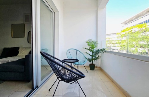 The fully-renovated luxurious air-conditioned apartment consists of 2 separate double bedrooms, 1 bathroom and a seating area. There's a dining area and a kitchen completed with a brand-new microwave, a fridge and an oven. All banks, financial service providers and government head offices are less than 1km radius.