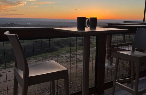 Introducing our luxurious guest suite above the trees with breathtaking views of the surrounding landscape. With deluxe linens, plush pillows, and a beautifully appointed en-suite bathroom, you'll feel indulged at every turn. Sip on a glass of wine while watching hawks soar over the oak trees from your private balcony or take in the stunning pink sunset from our sunset viewing area. Our guest suite also features both indoor and outdoor dining areas, allowing you to enjoy your meals with a view. Our bathroom is stocked with all the amenities you need, and guests can unwind in the rain shower or soak in the large tub. Our prime location offers easy access to nearby wineries, beaches, and hiking trails, making it the perfect place to experience the beauty of the area. Come and stay in our modern rooms, where rustic charm meets luxurious comfort. Elevate your vacation experience and book your stay with us now.