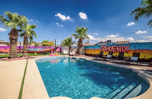 Phoenix Villa - Private Resort Style backyard, Pool, Volleyball, Putting Green is located in Maryvale. Phoenix Villa - Private Resort Style backyard, Pool, Volleyball, Putting Green provides accommodation, featuring Air Conditioner, Pool, View, among other amenities. This House features Air Conditioner, Pool, View, to make your stay a comfortable one.