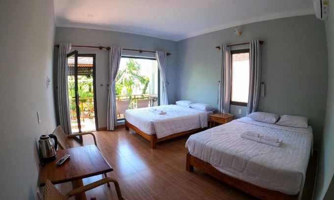 Featuring inner courtyard views, Phu Quoc Areca Garden Bungalow in Phú Quốc features accommodations, a garden, and barbecue facilities. Housed in a building dating back to 2019, this guest house is 2.7 miles from Sung Hung Pagoda and 16 miles from Corona Casino. There's a sun terrace and guests can access free Wifi and free private parking. Accessible via private entrance, all rooms have air conditioning, soundproofing, desk, and a private bathroom with a bidet. A balcony with an outdoor dining area and garden views is offered in each unit. At the guest house, every unit is equipped with bed linen and towels. Sightseeing tours are available close to the property. A car rental service is available at the guest house. Vinpearl Land Phu Quoc is 16 miles from Phu Quoc Areca Garden Bungalow, while Coi Nguon Museum is a 17-minute walk from the property. Phu Quoc International Airport is 1.9 miles away.