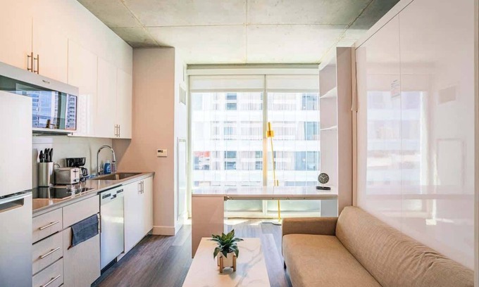 ✨Welcome to your perfect Phoenix escape! This bright and modern studio in the heart of Downtown offers a seamless blend of comfort, convenience, and style. Ideal for couples, solo travellers, and business guests alike. With walkable access to the city’s best spots and premium building amenities, you’ll have everything you need for a smooth and memorable stay.✨