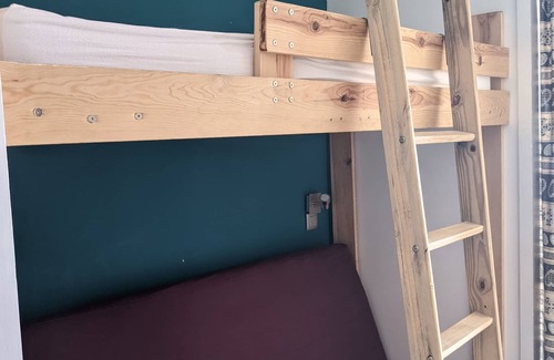 In the alcove is a sofa bed X140 surmounted by a bed X90.