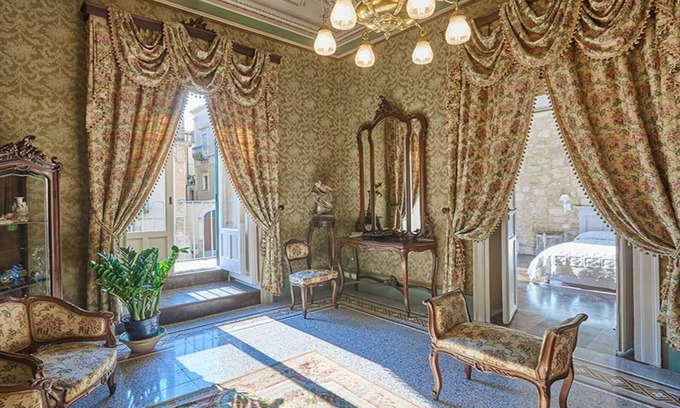 From the balconies and the terrace of this architectural jewel you can admire the spectacular façade of the Cathedral of San Giorgio and the monumentality of its dome; under the windows of the rooms the life of the iblei flows slowly, strolling among the palaces of a romantic nobility.