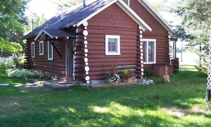Lakefront Log Cabin located on Pickerel Lake. One bedroom cabin (queen bed) with a sleeping loft upstairs(3 twin beds). Authenic log cabin that has been extensively remodeled and updated. The entire interior is log and knotty pine with beautiful fieldstone fireplace. Fully equipped kitchen and bathroom have recently been updated. The crystal clear lake water with sandy bottom in front of our cabin is shallow, with hard packed sand bottom with a gentle slope(no-drop off). Perfect for swimming and wading.