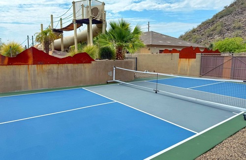 Pickleball Court! +GIANT Pool w/Waterslide! Game Room, Hot Tub, Golf+ | House in Mesa
