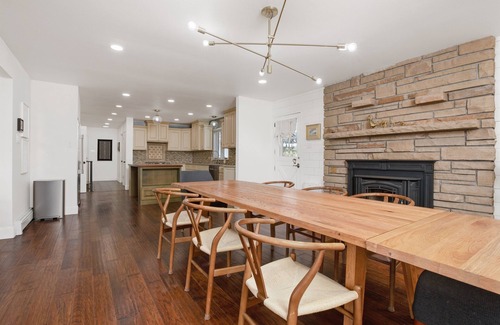 Embark on an unbelievable dream vacation when you stay at the Courtside Estates. Located in the historic downtown district of Windsor, you can spread out in this 5300 square foot vacation paradise, and host up to 20 guests! This lavish vacation home is located at the end of a quiet cul-de-sac with a large yard for hosting- and most importantly- playing pickleball on your very own private court! If the weather turns, a large and well-stocked gaming room is situated in the basement, complete with a pool table, shuffleboard, air hockey, wall games, and more! for those seeking a fun time. Hosting a holiday dinner? With a large, well-stocked kitchen and a bonus kitchenette, prep will be a breeze!
