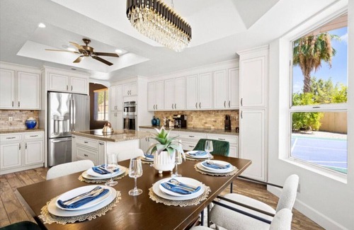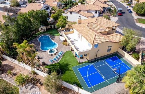 Pickleball, Heated Pool, Spa, Arcade, Pool Table is located in Mesa. Pickleball, Heated Pool, Spa, Arcade, Pool Table provides accommodation, featuring Private Pool, Security/Safety, Sports/Activities, among other amenities. This House features Private Pool, Security/Safety, Sports/Activities, to make your stay a comfortable one.