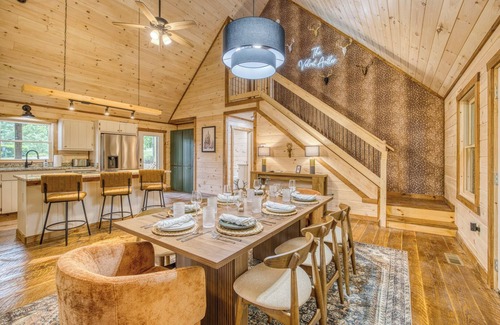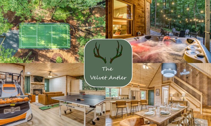 This stylish mountain escape is nestled in the heart of Blue Ridge, Georgia. Tucked among the trees, it is an amenity-packed retreat that features a private pickleball court in the woods, a game room the whole family will love, a relaxing sauna to unwind after your adventures and more. Just minutes from charming downtown Blue Ridge, you’ll have the perfect mix of peaceful seclusion and easy access to restaurants, shops, and outdoor activities. Whether you're here for play or pure relaxation, The Velvet Antler is designed to deliver an unforgettable getaway.
