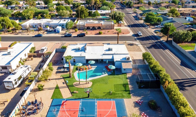 Pickleball, Pool, Arcade, Poker Table, Basketball, Bocce, & Golf | Fairway Oasis is located in Thunderbird Desert Estates. Pickleball, Pool, Arcade, Poker Table, Basketball, Bocce, & Golf | Fairway Oasis provides accommodation, featuring Accessibility, Wellness Facilities, Internet, among other amenities. This House features Accessibility, Wellness Facilities, Internet, to make your stay a comfortable one.