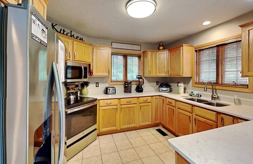 Brimming with charm, Picture Perfect offers you all the comforts of home plus a lot more! The central location and well-chosen decor make it the ideal starting point for a great Deep Creek Vacation. Bring friends and family together in the great room for cozy evenings by the gas fireplace. The large, leather sectional sofa ensures everyone has a spot to watch TV and chat about the day. Natural light streams through the sliding doors that also gives you easy access to the deck. Take turns preparing yummy treats in the well-equipped kitchen. It is sure to please the chef in your group. Seating at the breakfast bar and dining table gives everyone an opportunity to sit together at mealtime. It is one of the best ways to bond when you're at Deep Creek. You can also dine outdoors on the deck when you're in the mood for an afternoon barbecue. Upstairs, there is a spacious primary suite furnished with a king bed. You can unwind in the jetted tub before you drift off to sleep. Decorated with comfort in mind, there is also another bedroom on this level with a king bed, a daybed and a TV. A private bathroom is reserved for this bedroom. The lower level family room expands your living space so that everyone can spread out and relax. Watch TV, play shuffleboard or curl up with a good book after a day on the slopes. There are two bedrooms, one with a queen bed and one with a queen bed and daybed, on this floor that round out your sleeping quarters. Overlooking the ample yard, the deck gives you the perfect place to soak up some sunshine while you watch the kids run and play. When the sun goes down, take a dip in the bubbling outdoor hot tub under starry mountain skies. Be sure to bring your tennis racket and a basketball for the community courts. They are adjacent to the pavilion so you can have a picnic lunch after your game. Within a five to ten-minute drive, you can find endless opportunities for recreation. Stop by a local marina to rent a boat for the day and explore the lake's miles of shoreline. This is the best way to spend a summer afternoon! Be sure that Deep Creek Lake State Park is on your vacation itinerary too. With a sandy beach for swimming, several playgrounds, hiking trails and kayak rentals, there is no shortage of fun! Throughout all four seasons, Wisp Resort is home to a wide variety of activities. Skiing, golf, snow tubing, a mountain coater, ziplines, cross country skiing and mountain bikes are just a few of their offerings. For a real thrill, head to the Adventure Sports Center on top of the mountain. An experienced guide can take you on a whitewater rafting trip that will get your heart pounding! For a more leisurely experience, try a flatwater kayak tour with All Earth Eco Tours at the Savage River Reservoir. Unrivaled natural beauty and abundant wildlife ~ including Bald Eagles ~ will highlight your excursion. Restaurants, shops, mini golf, arcades and the movie theater are also close to Picture Perfect. There is something for nearly every age and interest. Make reservations for your Deep Creek vacation and look forward to making special memories with your favorite people.