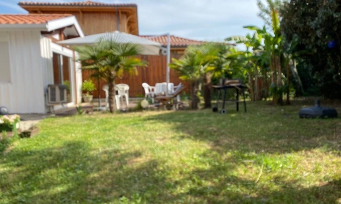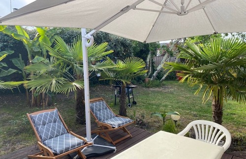 Picturesque house in the basin style sailor's house with its wooded living room its high ceilings and its wooden cabin serving as an outbuilding overlooking a small garden with palm and banana trees nestled in the center of La Teste in a wooded garden giving great privacy for a intimate and peaceful holiday stay 100 m from the station and the Port a lot of charm for this house that smells of the basin