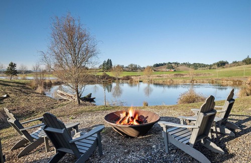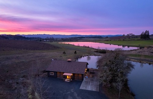 Picturesque Lakeside Setting, Patio Seating w Fire-Pit, Surrounded by Vineyards, On Solena Estate | House in Yamhill