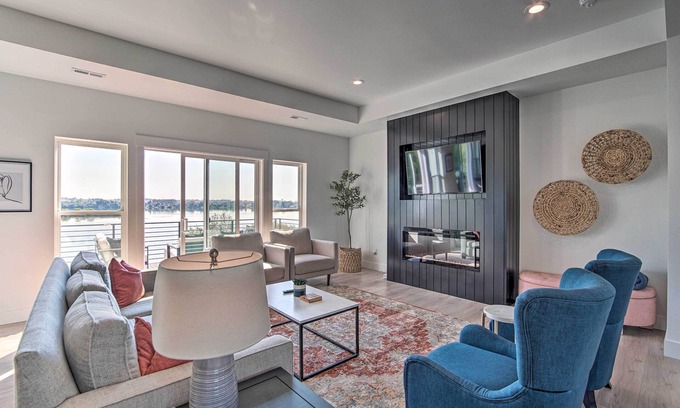 INDOOR LIVING: Smart TV, laptop friendly, fireplace, bathtub/shower, walk-in closet, dining table, modern decor